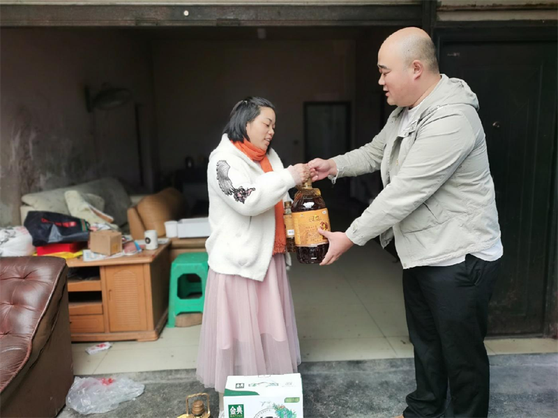 自黨史學習教育開展以來,雅安交建集團運通公司黨支部始終將“我為群眾辦實事”實踐活動作為黨史學習教育的重要內容貫徹始終——今年3月19日,運通公司黨支部與青江街道石馬社區(qū)黨委書記正式簽訂了結對共建共創(chuàng)協(xié)議書,力爭發(fā)揮資源優(yōu)勢主動對接服務,在提高公司黨組織凝聚力、召力和戰(zhàn)斗力的同時,使黨建工作真正發(fā)揮“服務群眾、凝聚人心、促進發(fā)展”的作用,為共建和諧文明城市貢獻力量。當從石馬社區(qū)黨委得知黃非的愛人早前意外離世,獨自肩負著照顧2名年幼孩子、供養(yǎng)1名年邁老人的重擔,是社區(qū)內生活最為困難的家庭之一情況后,運通公司黨支部迅速確定黃非一家為 “一對一”幫扶對象,并整合黨支部力量,于今年6月為其送去了3000元慰問金。今年中秋節(jié),運通公司黨支部又主動伸出援助之手,為黃非一家送去慰問物資及節(jié)日祝福。