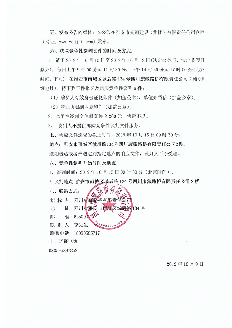 四川康藏路橋有限責任公司國道351線磽磧至夾金山路面改造工程波形護欄采購競爭性談判結(jié)果公示