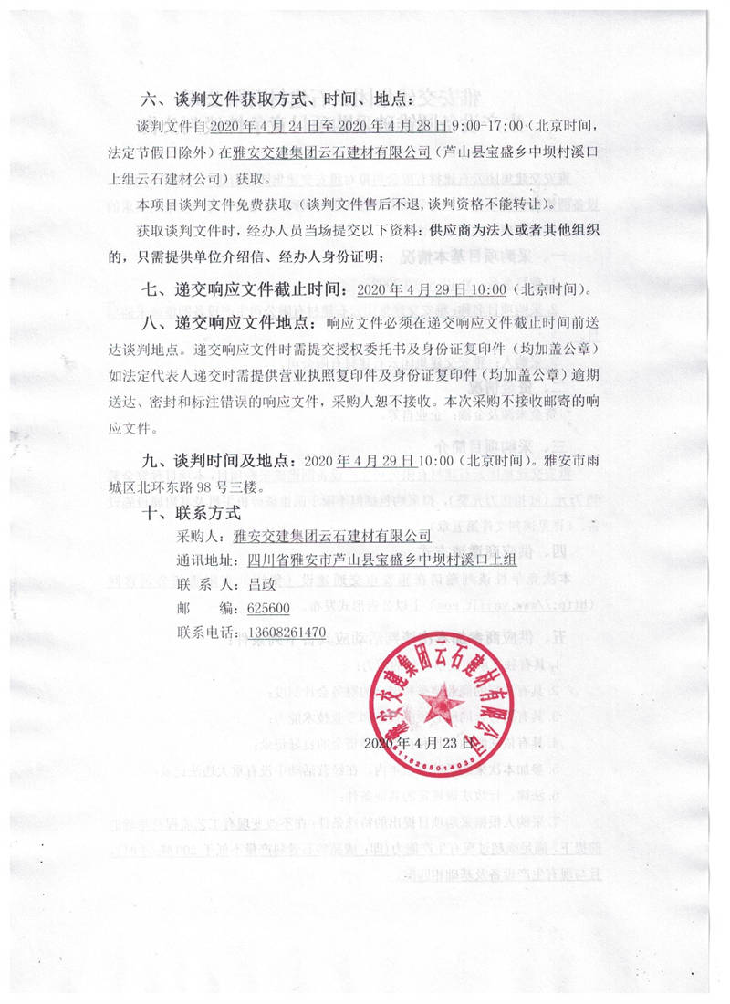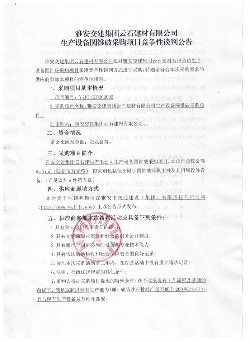 雅安交建集團(tuán)云石建材有限公司生產(chǎn)設(shè)備圓錐破采購項(xiàng)目競爭性談判公告