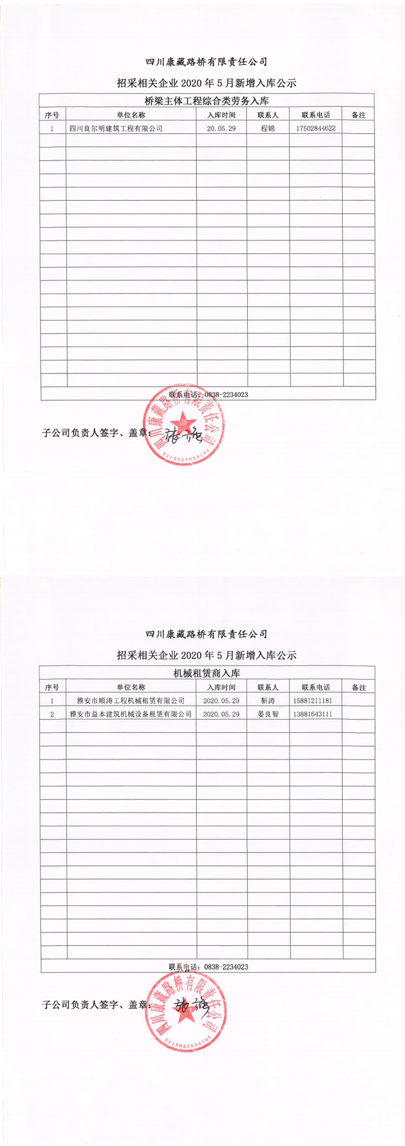 四川康藏路橋有限責任公司招采相關(guān)企業(yè)2020年5月新增入庫公示