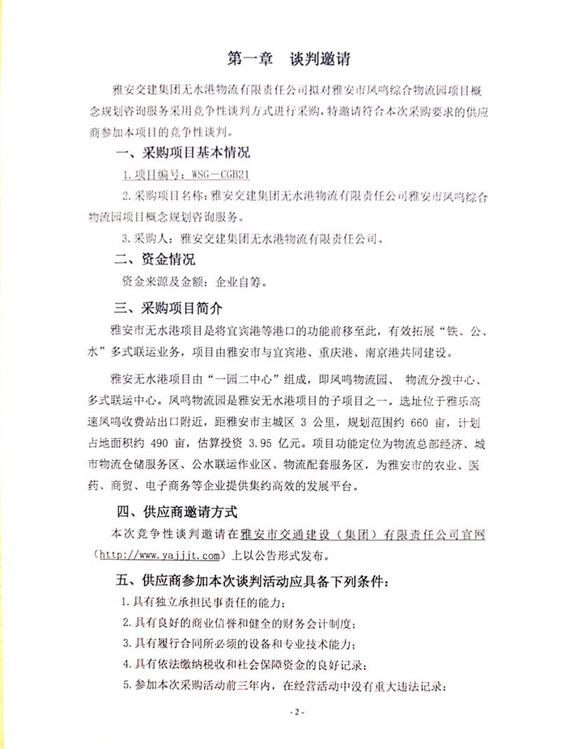 雅安交建集團(tuán)無水港物流有限責(zé)任公司雅安市鳳鳴綜合物流園項(xiàng)目概念規(guī)劃咨詢服務(wù)競爭性談判公告