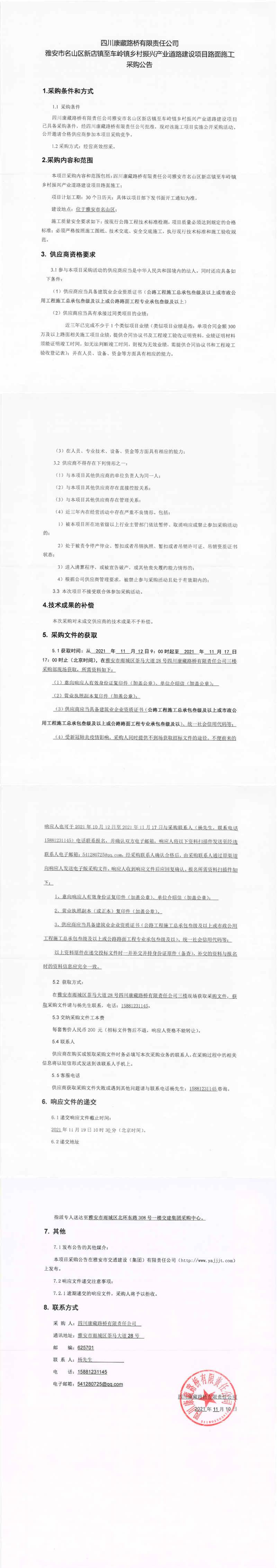 四川康藏路橋有限責任公司雅安市名山區(qū)新店鎮(zhèn)至車嶺鎮(zhèn)鄉(xiāng)村振興產業(yè)道路建設項目路面施工采購公告