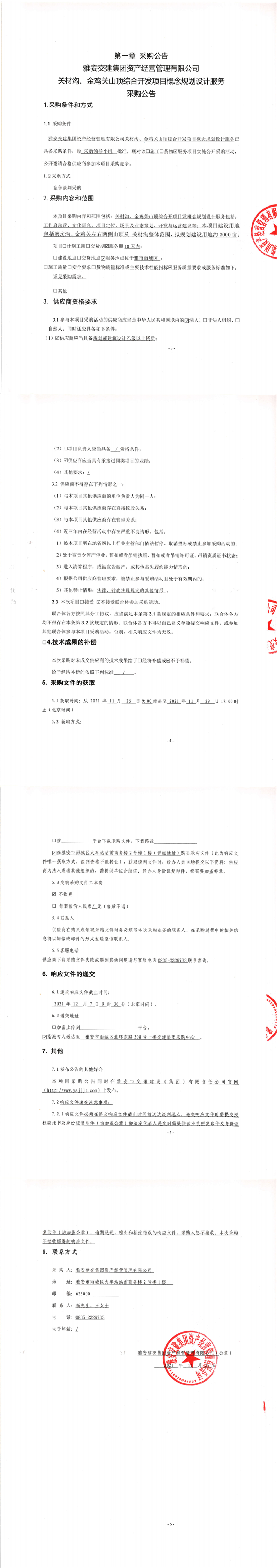 雅安交建集團資產(chǎn)經(jīng)營管理有限公司關材溝、金雞關山頂綜合開發(fā)項目概念規(guī)劃設計服務采購公告