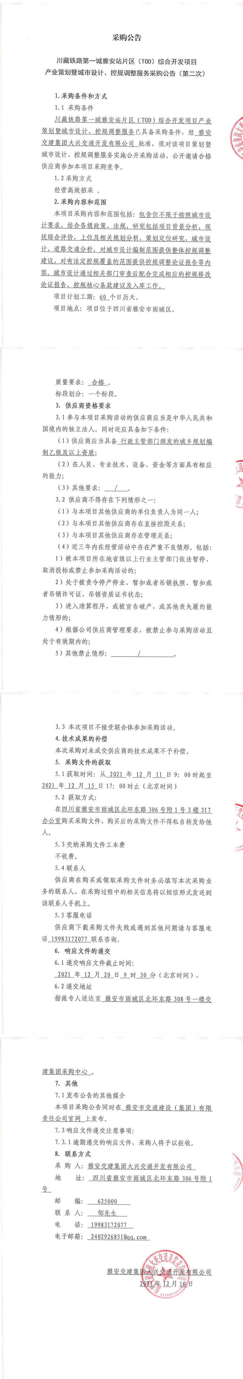 雅安交建集團大興交通開發(fā)有限公司川藏鐵路第一城雅安站片區(qū)(TOD)綜合開發(fā)項目產(chǎn)業(yè)策劃暨城市設(shè)計、控規(guī)調(diào)整服務(wù)采購公告(第二次)
