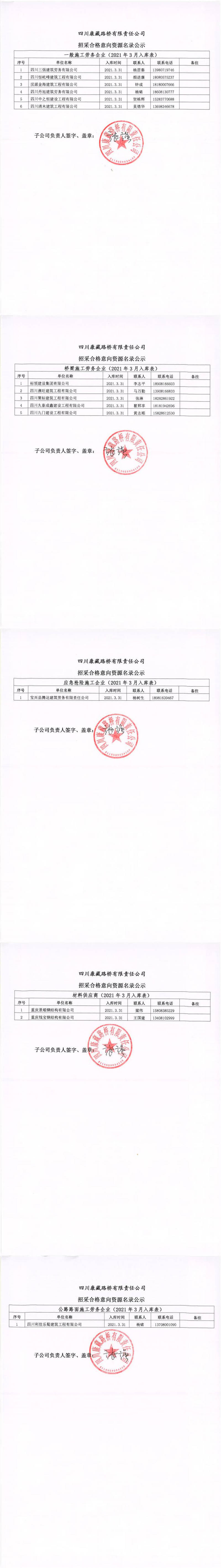 四川康藏路橋有限責任公司招采合格意向資源名錄公示