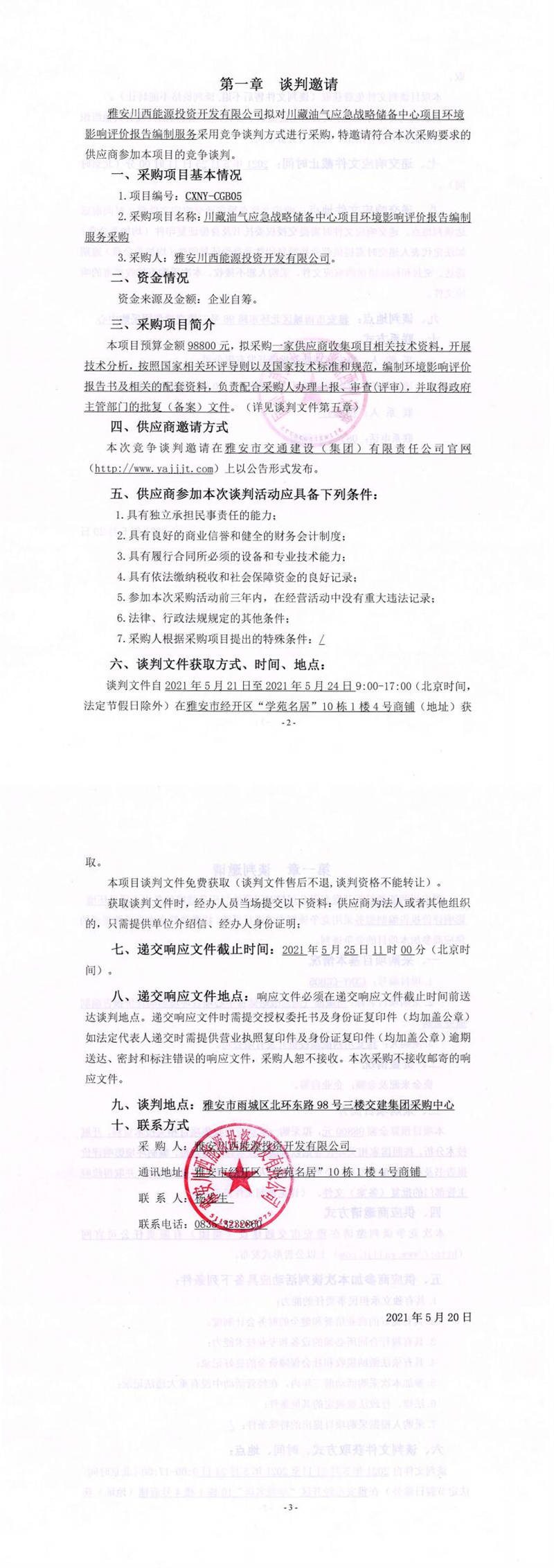 雅安川西能源投資開發(fā)有限公司川藏油氣應(yīng)急戰(zhàn)略儲(chǔ)備中心項(xiàng)目環(huán)境影響評價(jià)報(bào)告編制服務(wù)采購競爭談判公告