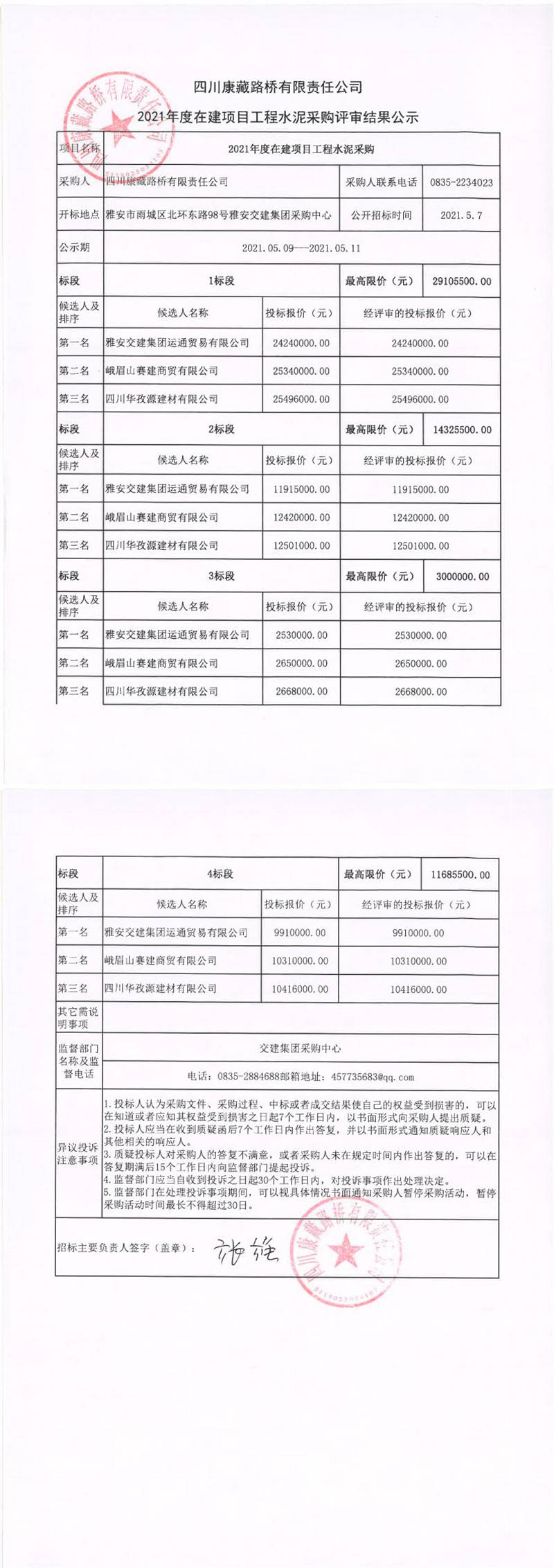 四川康藏路橋有限責任公司2021年度在建項目工程水泥采購評審結果公示
