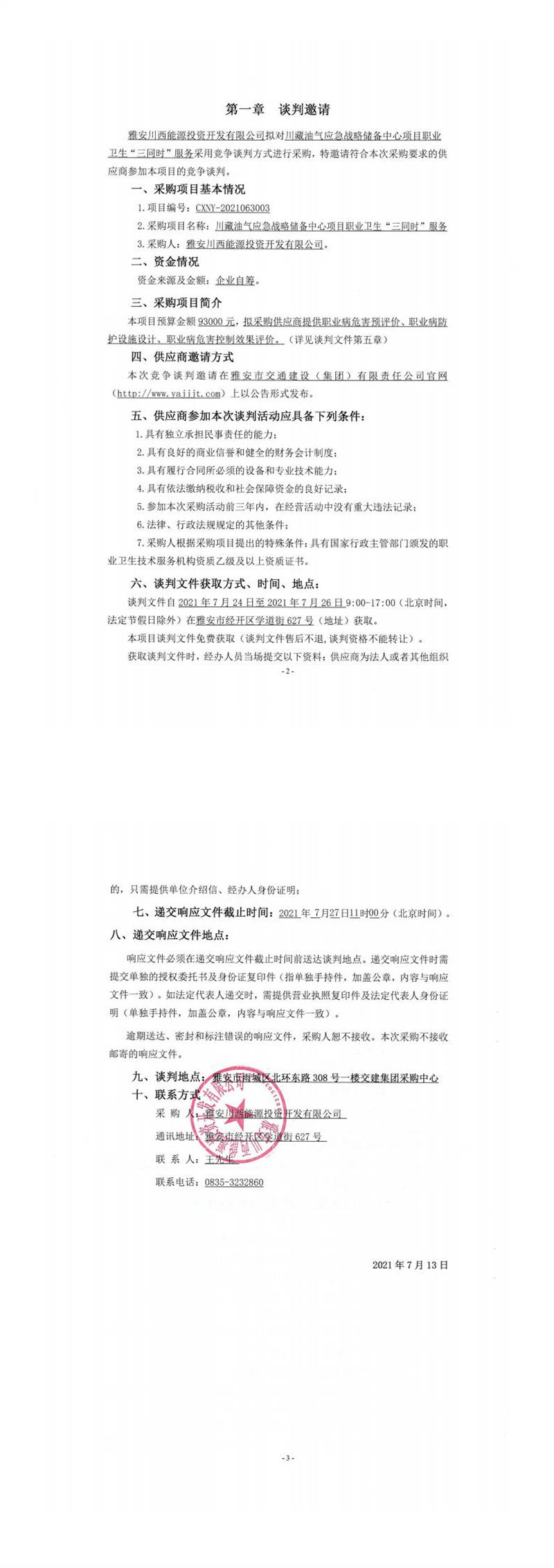 雅安川西能源投資開發(fā)有限公司川藏油氣應(yīng)急戰(zhàn)略儲備中心項(xiàng)目職業(yè)衛(wèi)生“三同時(shí)”服務(wù)競爭談判公告
