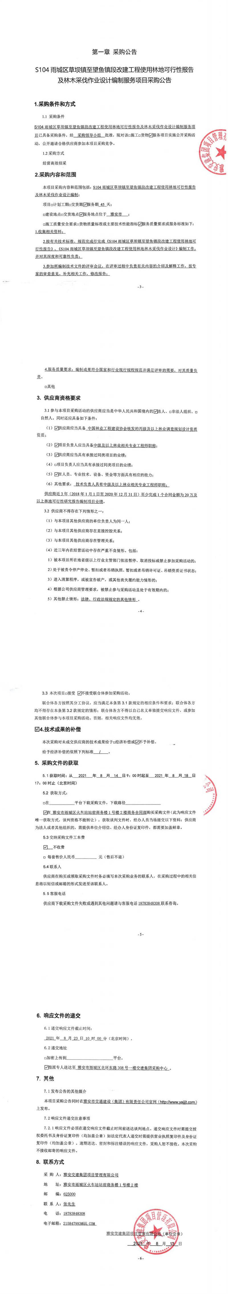 雅安交建集團(tuán)項(xiàng)目管理有限公司S104雨城區(qū)草壩鎮(zhèn)至望魚鎮(zhèn)段改建工程使用林地可行性報(bào)告及林木采伐作業(yè)設(shè)計(jì)編制服務(wù)項(xiàng)目采購公告