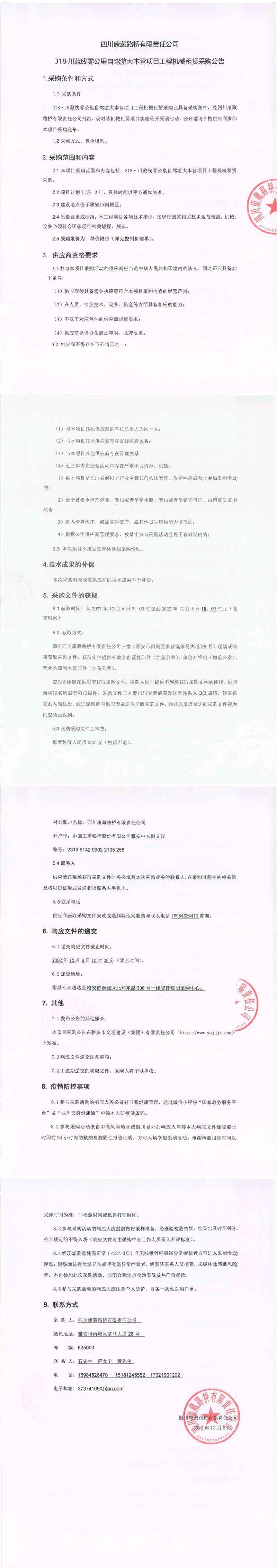 四川康藏路橋有限責(zé)任公司318.川藏線零公里自駕大本營項(xiàng)目工程機(jī)械租賃采購公告