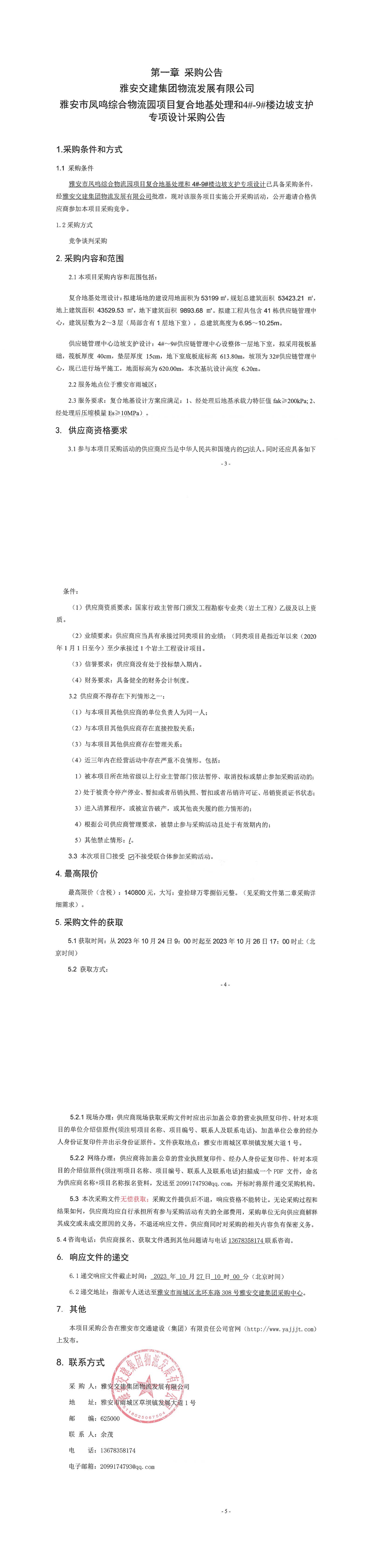 雅安交建集團(tuán)物流發(fā)展有限公司雅安市鳳鳴綜合物流園項(xiàng)目復(fù)合地基處理和4#-9#樓邊坡支護(hù)專項(xiàng)設(shè)計(jì)采購(gòu)公告