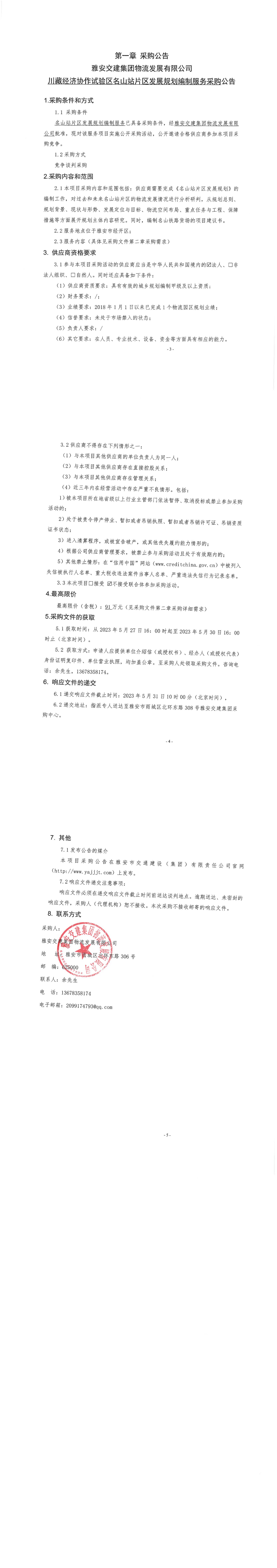 雅安交建集團物流發(fā)展有限公司川藏經(jīng)濟協(xié)作試驗區(qū)名山站片區(qū)發(fā)展規(guī)劃編制服務(wù)采購公告