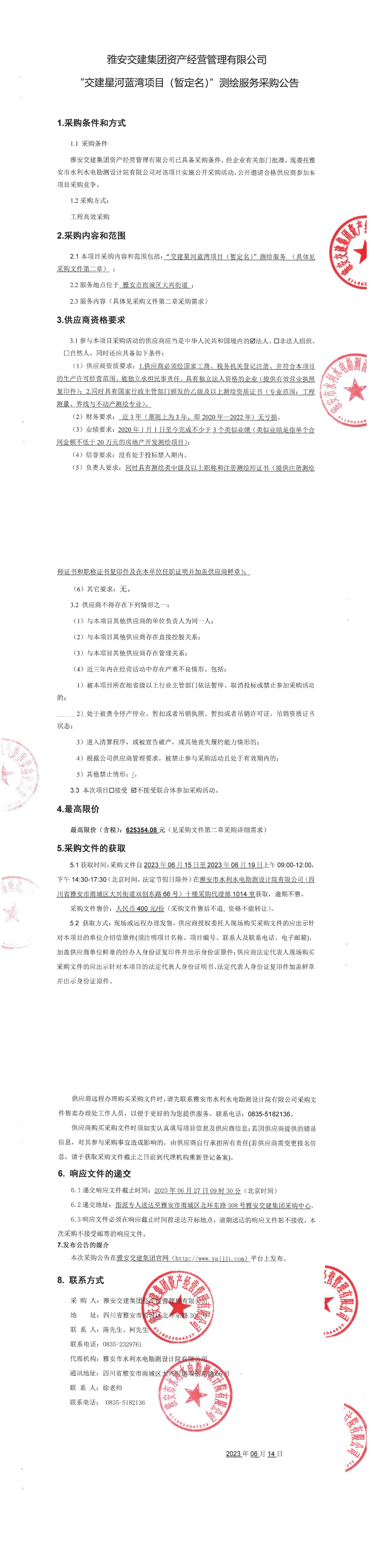 雅安交建集團(tuán)資產(chǎn)經(jīng)營(yíng)管理有限公司“交建星河藍(lán)灣項(xiàng)目(暫定名)”測(cè)繪服務(wù)采購(gòu)公告