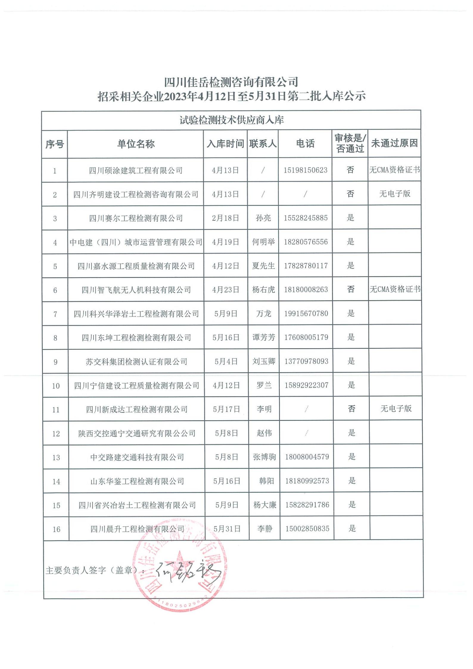 四川佳岳檢測(cè)咨詢(xún)有限公司(試驗(yàn)檢測(cè)技術(shù)供應(yīng)商庫(kù))2023年4月12日至5月31日第二批入庫(kù)結(jié)果公示