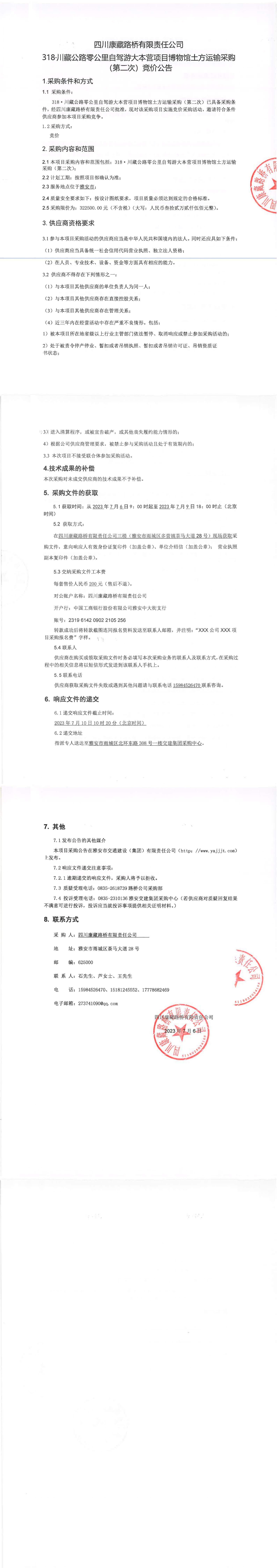 四川康藏路橋有限責(zé)任公司318·川藏公路零公里自駕游大本營(yíng)項(xiàng)目博物館土方運(yùn)輸采購(第二次)競(jìng)價(jià)公告
