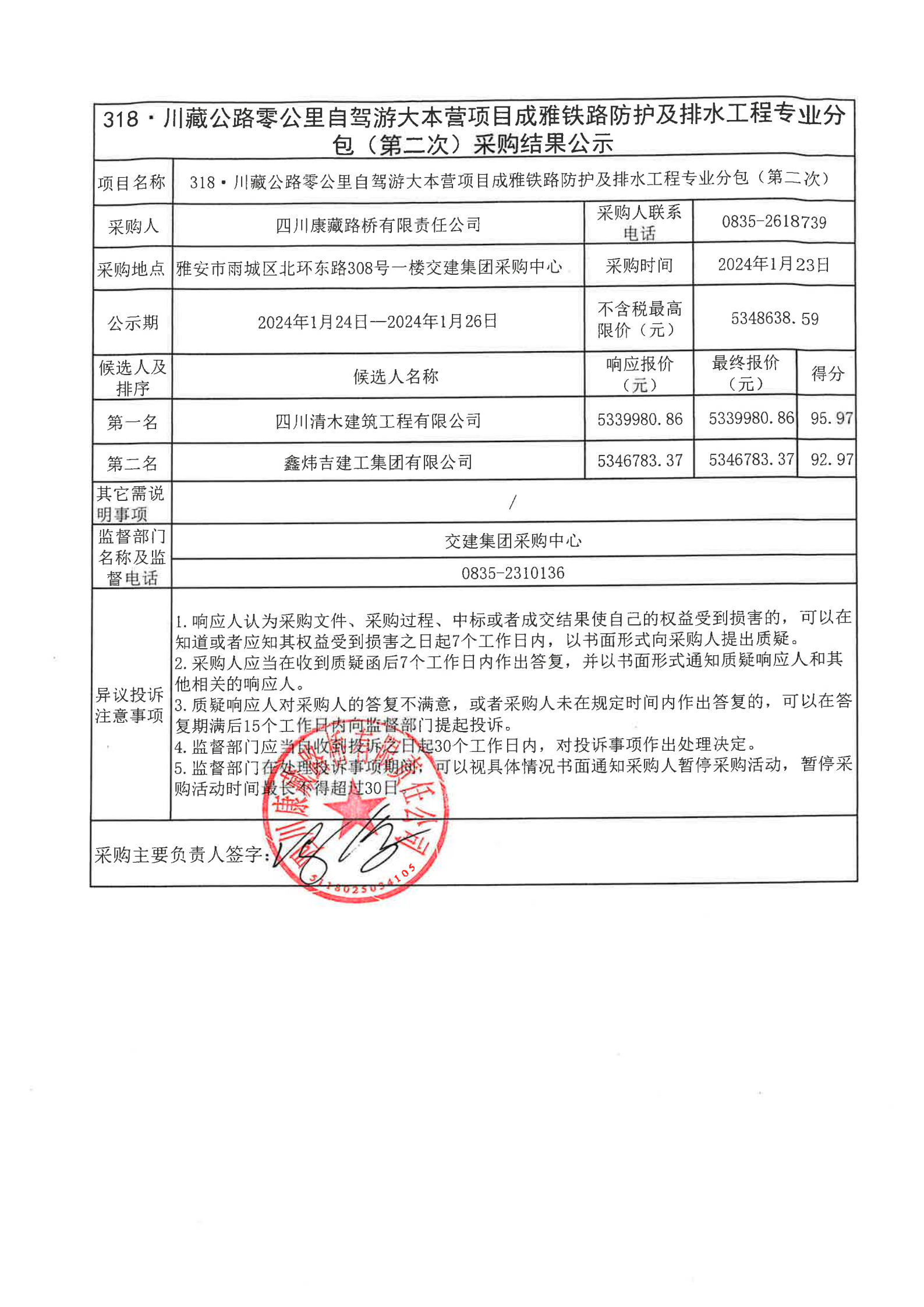 四川康藏路橋有限責任公司318·川藏公路零公里自駕游大本營項目成雅鐵路防護及排水工程專業(yè)分包(第二次)采購結(jié)果公示