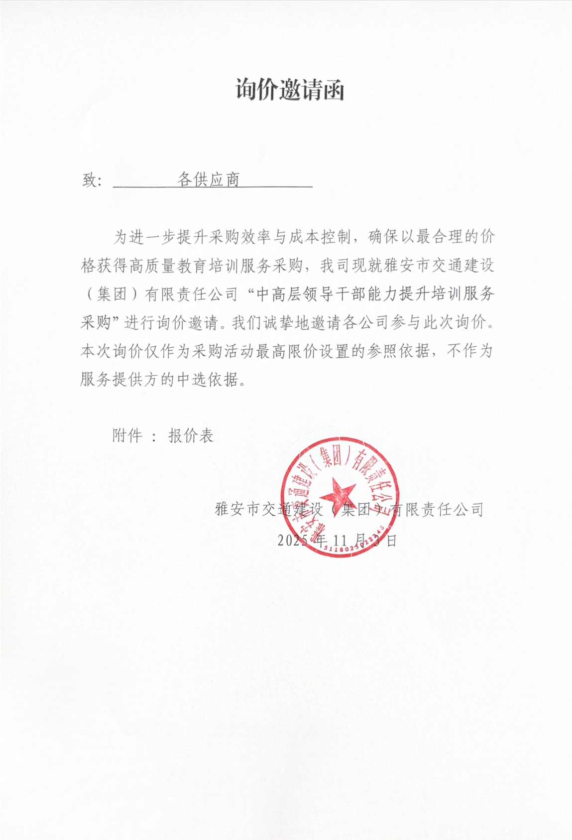關(guān)于雅安交建集團下屬子公司主要負(fù)責(zé)人經(jīng)濟責(zé)任審計項目限價的詢價函