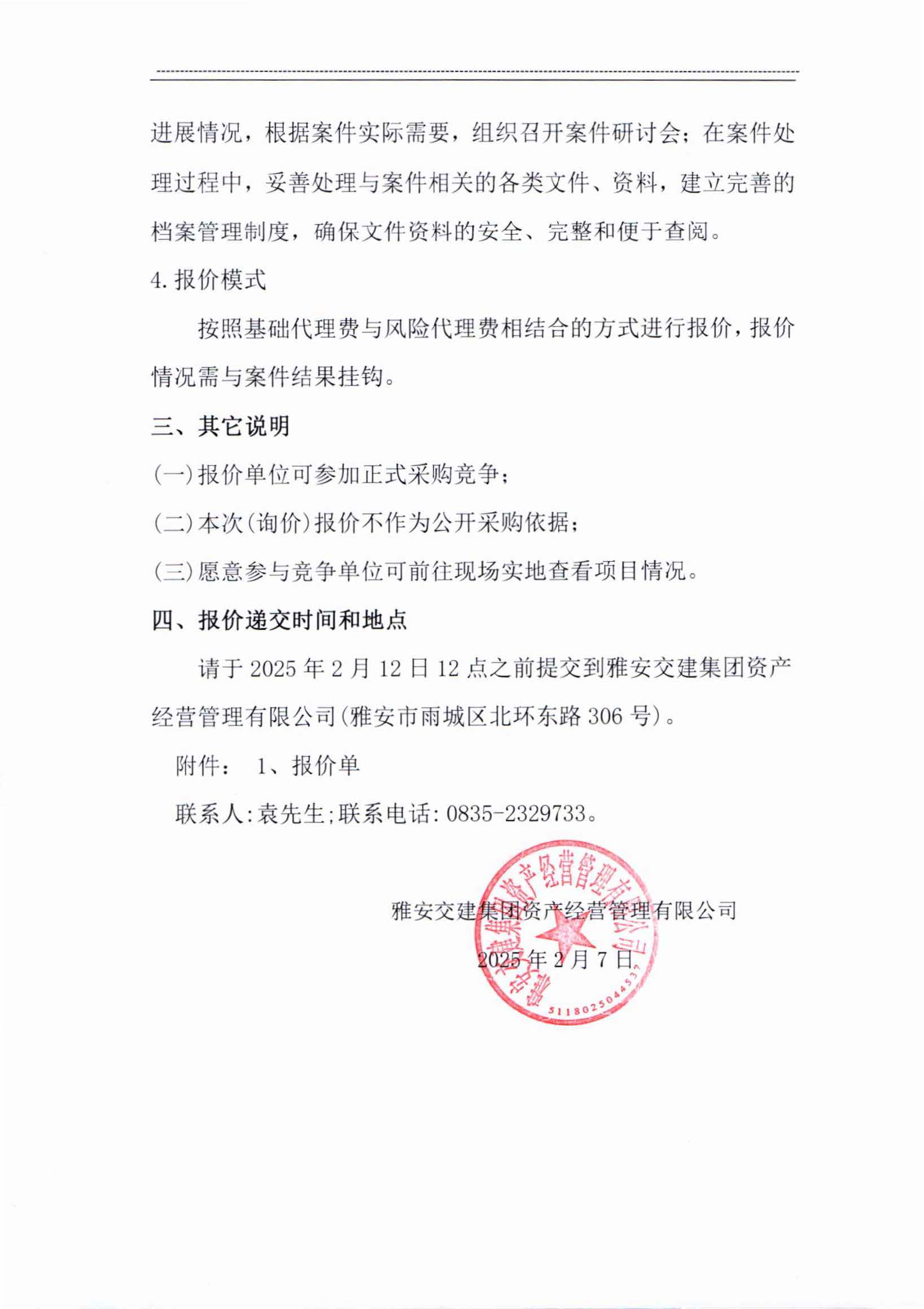 雅安交建集團(tuán)資產(chǎn)經(jīng)營管理有限公司成雅高速金雞關(guān)互通及服務(wù)區(qū)項(xiàng)目(雨名快速通道項(xiàng)目)TJ2標(biāo)段訴訟代理服務(wù)項(xiàng)目市場調(diào)查公告
