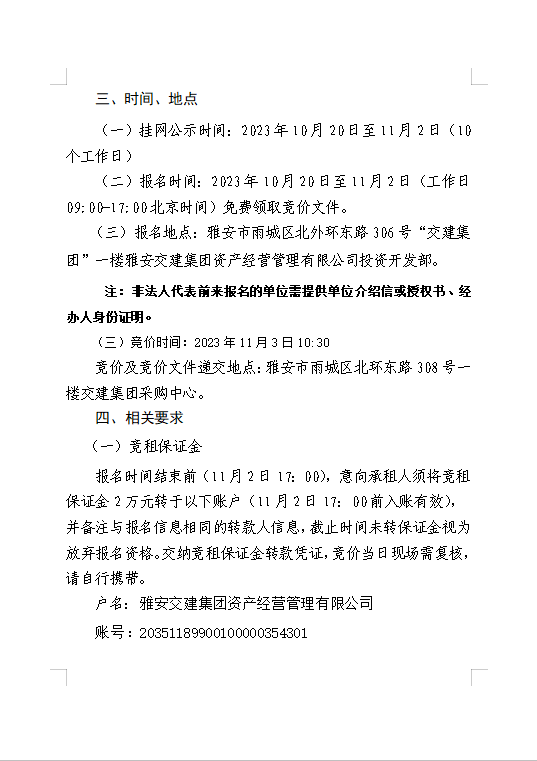 雅安交建集團資產經營管理有限公司 雨名快速通道(名山服務區(qū))3號樓商鋪招租公告