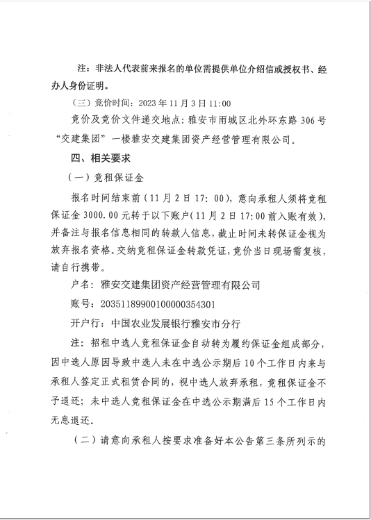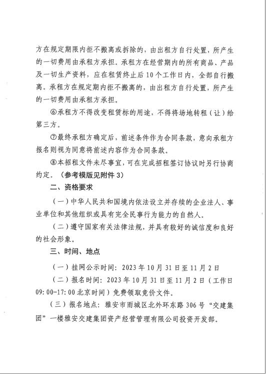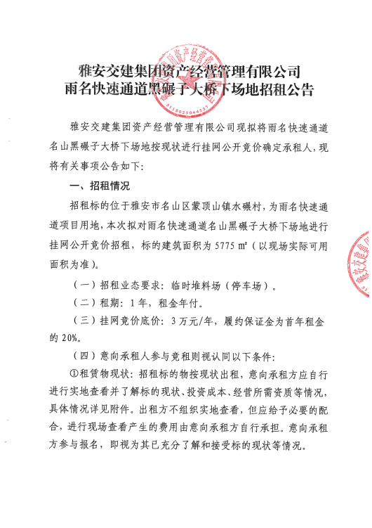 雅安交建資產(chǎn)經(jīng)營管理有限公司雨名快速通道黑碾子場(chǎng)地招租公告