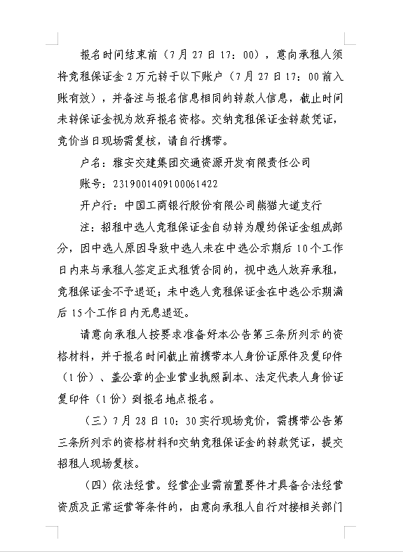 雅安交建集團交通資源開發(fā)有限責任公司雨名快速通道名山服務(wù)區(qū)場地(游樂類項目)招租公告