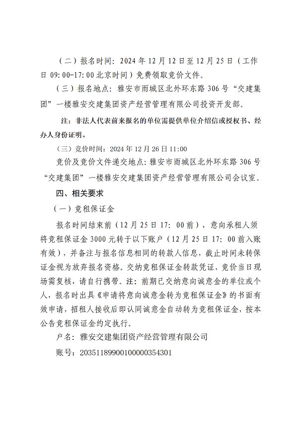 雅安交建集團(tuán)資產(chǎn)經(jīng)營(yíng)管理有限公司2024年雨名快速通道名山黑碾子大橋下場(chǎng)地招租公告