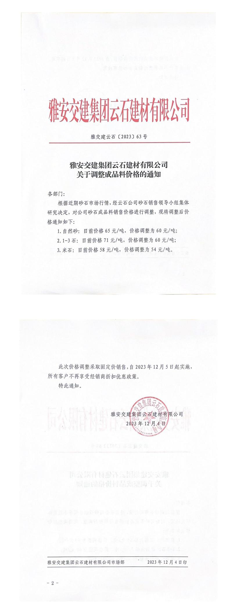 ÑŰ²½»½¨¼¯ˆF(tu¨¢n)ÔÆÊ¯½¨²ÄÓÐÏÞ¹«Ë¾³ÉÆ·ÁÏäNÊÛƒr(ji¨¤)¸ñÕ{(di¨¤o)Õû¹«¸æ£¨2023-12-04£©