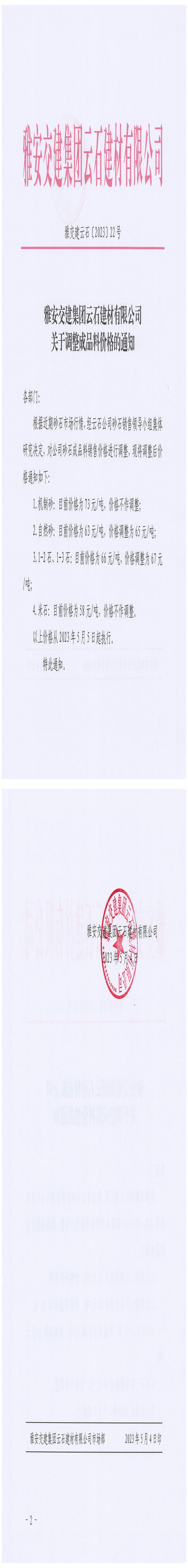 ÑŰ²½»½¨¼¯ˆF(tu¨¢n)ÔÆÊ¯½¨²ÄÓÐÏÞ¹«Ë¾³¬ÒŽ(gu¨©)¸ñʯÁϸ‚(j¨¬ng)ƒr(ji¨¤)äN(xi¨¡o)ÊÛ¹«¸æµÚ2´Î£¨2023.5.5£©